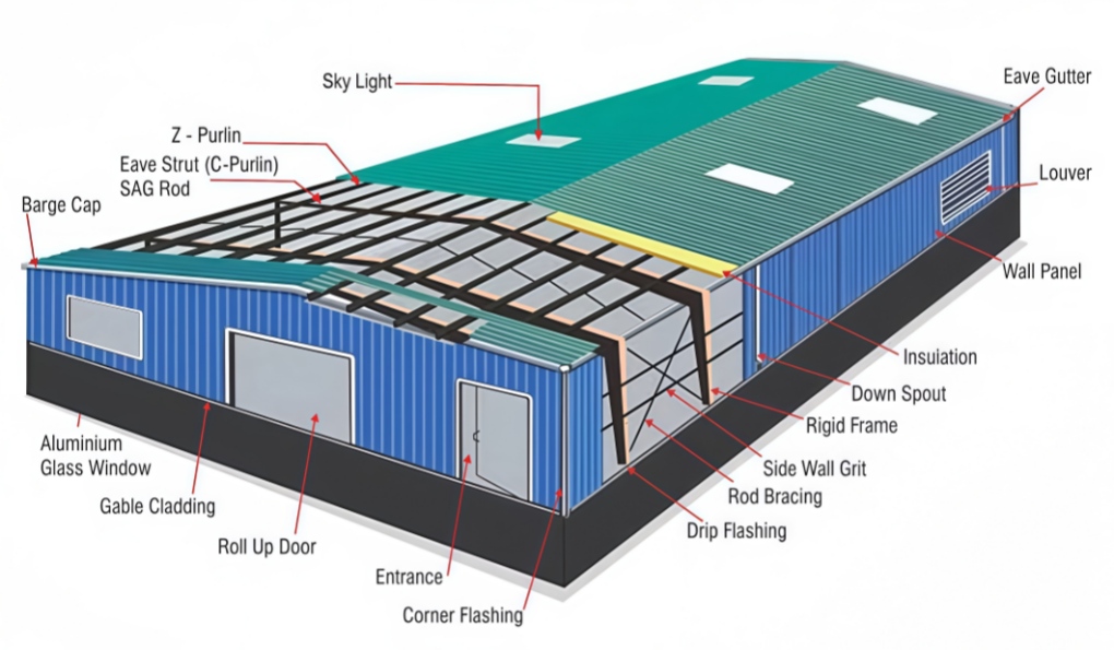 8. Roof and Wall: determine the panel material, such as color steel panel, and metal sandwich panel.