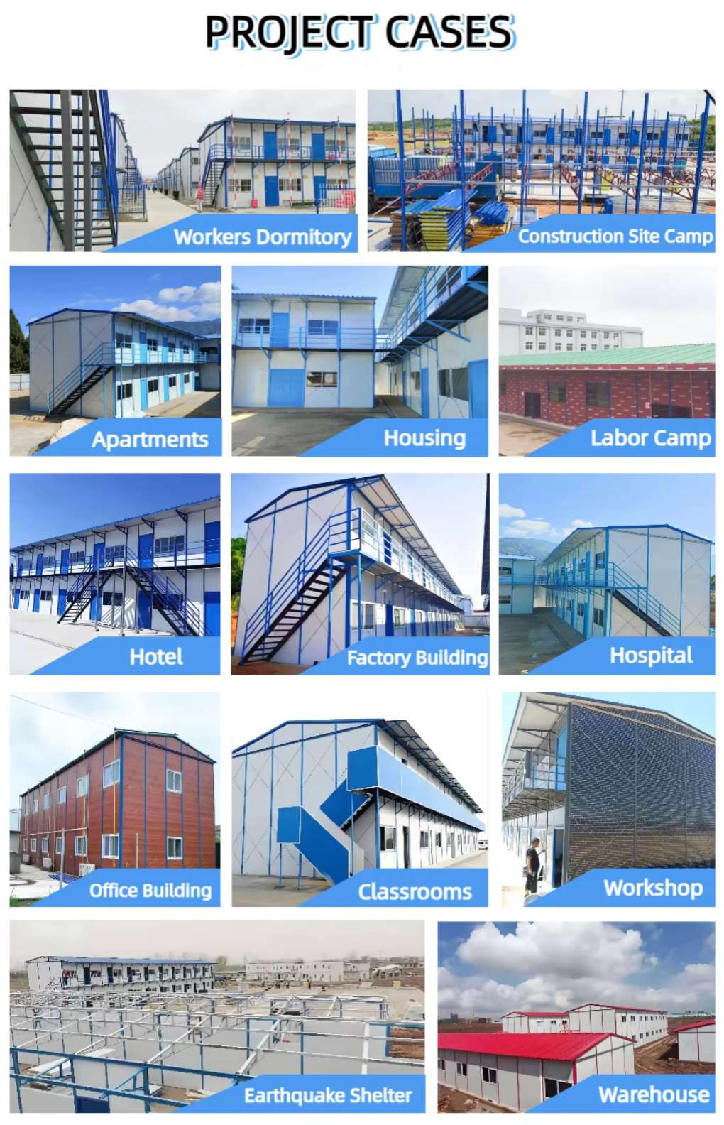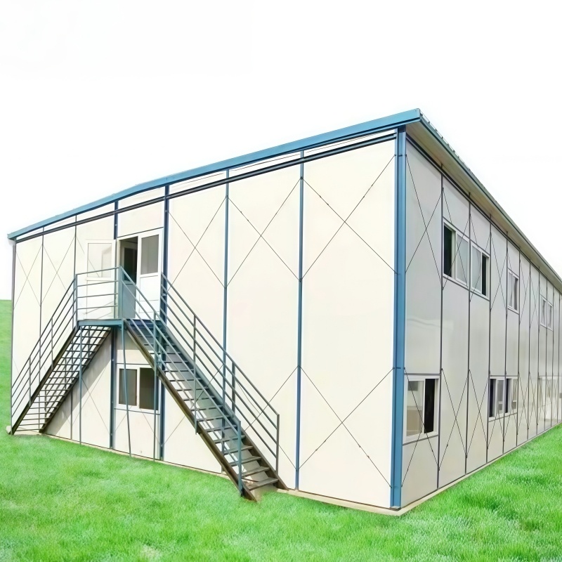 This Temporary Construction Site Prefabricated K House is a lightweight, modular construction product with simple structure, diverse functions, and convenient installation. It uses a light steel structure as the framework and is equipped with high-performance core-ply color steel plates as the wall materials, ensuring the overall building's stability and durability, as well as excellent insulation, waterproofing and soundproofing properties. It is widely used in construction sites, temporary dormitories, office spaces, warehouses, barracks and other short-term and long-term scenarios. Compared with traditional temporary buildings, the K-type Construction Site K House has significant advantages in structural performance, construction efficiency and environmental friendliness.