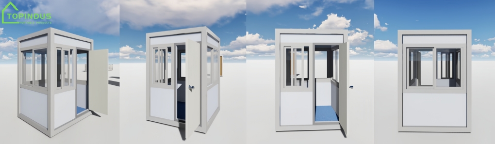 Designed with large windows on all four sides, the Sentry Guard Booth allows for a wide field of view, ensuring clear visibility and natural light inside. The spacious interior includes a built-in worktable and drawers, offering convenient storage for essential tools, computers, documents, and office supplies. The worktable surface is strong and easy to clean, making daily operation and maintenance simple and efficient.